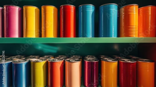 Colorful Canned Goods on Shelves: A Vibrant Display of Food Packaging