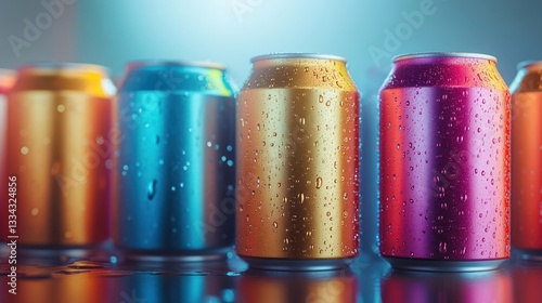 Colorful cans, condensation, studio, drinks, advertising