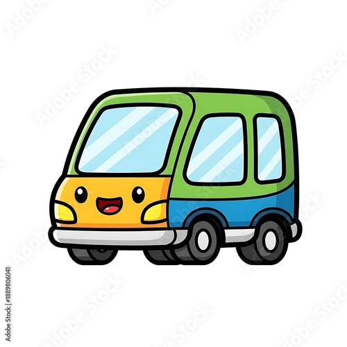Colorful Cartoon Van with Happy Face.