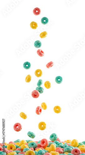 isolated, cereal, breakfast, food, colourful, ring, falling, background, photo, snack, sweet, sugar, crunchy, healthy, morning, children, fun, playful, round, macro, studio, nourishment, grain, wheat, corn, oat, fruit, berry, orange, yellow, green, red, pink, blue, white, texture, pattern, delicious, tasty, fresh, wholesome, energy, treat, appetising, meal, eating, refreshing, vibrant