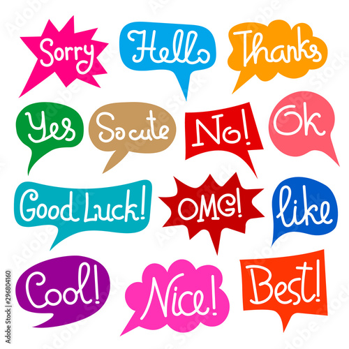 bubble, speech, talk, drawn, hand, text, vector, bubble, message, balloon, illustration, background, set, speak, cartoon, dialogue, design, shape, graphic, word, abstract, cloud, short, colourful, colours, sticker, badge, yes, thank, icon