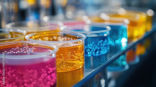 Colorful Chemical Solutions in Beakers: Science and Experimentation concept