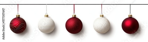 cheer, warmth, sparkle, glossy, mood, joyful, new year, setting, creativity, ornament, seasonal, shiny, aesthetic, elegance, festive, artistic, simple, bauble, hanging, ball, thread, arrangement, white, red, holiday, design, style, texture, decorative, pattern, celebration, decor, colours, decoration, christmas, bright, background, traditional, winter, holiday spirit