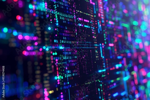 Colorful Computer Code Displayed on a Screen with Futuristic Digital Patterns
