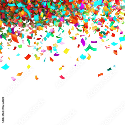 Colorful confetti falling creates a festive atmosphere perfect for celebrations, parties, or adding a touch of joy to designs; bright, vibrant, exciting, and cheerful