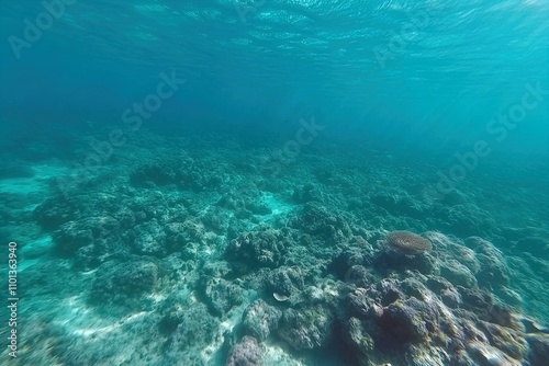 Colorful coral reef ecosystem thriving beneath clear ocean waters in a tropical location