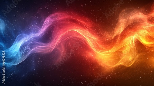 Colorful cosmic swirls create a mesmerizing blend of blue, purple, red, and orange hues in a dark, starry background