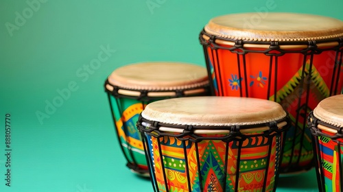 Colorful Cuban bongo drums with vibrant patterns, musical heritage, Hispanic Heritage Month tribute