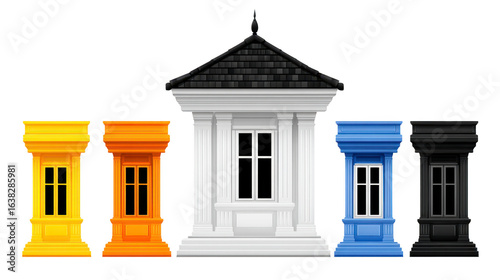 colourful, decorative, structure, architectural, style, vibrant, yellow, orange, blue, black, creativity, uniqueness, design, modern, artistic, home, building, exterior, facades, craftsmanship, detail, urban, contemporary, heritage, style, window, door, symmetry, aesthetic, visual, art, illustration, graphic, digital, architecture, creative, modern architecture, design element, transparent