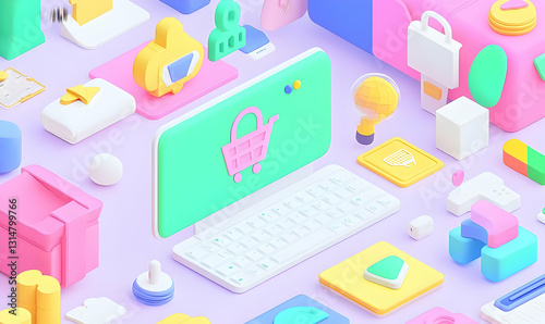shopping, digital, online, keyboard, colourful, icon, technology, illustration, e-business, creativity, design, object, minimalism, multimedia, workspace, lifestyle, concept, virtual, modern, pastel, computer, graphic, commerce, supply, cloud, shopping cart, consumer, access, basket, modernity, marketing, idea, arrangement, art, trendy, vibrant, digital artwork, decorative, abstract, fun, layout, branding