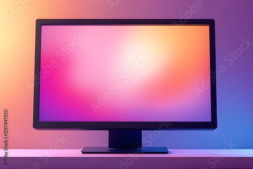 Colorful Display Monitor on a Desk with Gradient Background