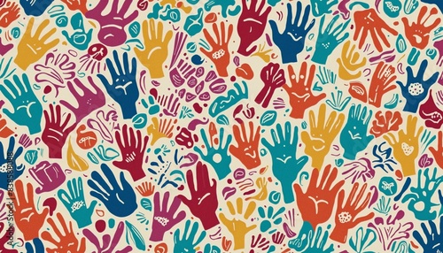 modern, arm, crowd, texture, colours, community, up, paper, palm, raise, many-coloured, paint, diverse, art, group, pattern, seamless pattern, team, seamless, protest, open, culture, help, human, social, creative, ethnic, person, vote, different, illustration, together, hand-drawn, abstract, finger, people, charity, design, background, drawing, diversity, collage, graffiti, vector, colourful, hand, drawn