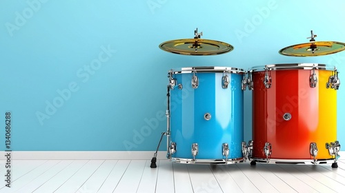 drum, red, yellow, blue, music, instrument, percussion, colourful, bright, cheerful, studio, background, wall, floor, shiny, modern, minimalist, simple, clean, image, photo, vibrant, energy, rythm, beat, tempo, sound, melody, harmony, composition, art, design, graphic, illustration, visual, creative, abstract, texture, light, shadow, object, still, life, interior, room, space, drum, musical, band