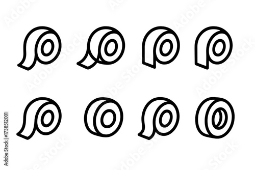 Colorful Electrical Tape Icons. Solid, filled icon set of electrical tape: black electrical tape, red electrical tape, blue electrical tape, yellow electrical