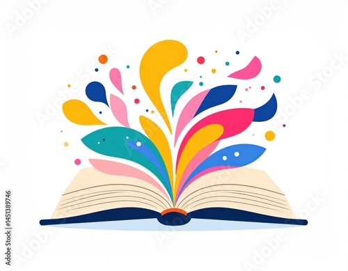 book, open, colourful, vibrant, explosion, creative, imagination, education, cognition, learning, design, illustration, graphic, art, pattern, abstract, splash, page, modern, from, colours, cover