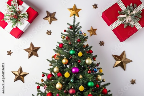Colorful Festive Christmas Tree on Simple White Background with Star Motif