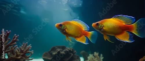 colourful, fish, swimming, gracefully, clear, aquarium, animal, underwater, coral, tropical fish, wide, poster, wallpaper, background