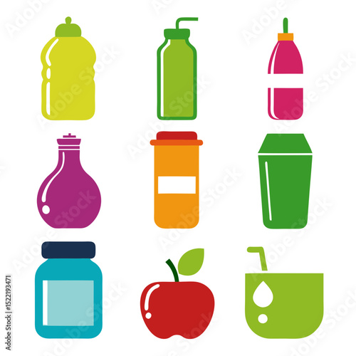 water bottle, juice, drink, glasses, cup, apple, container, healthy, lifestyle, fresh, beverage, fruit, diet, health, vitamin, fluid, hydratation, refreshment, nourishment, vegetarian, vegan, icon, clip art, illustration, vector, colourful, graphic, modern, minimalist, shape, bottle, food, organic, vitamin, straw, dieting, liquid