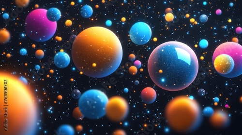 sphere, colours, blue, orange, pink, purple, cosmic, space, background, abstract, star, light, glow, digital, art, bubble, shiny, pattern, design, creative, aesthetic, depth, vibrant, fantasy, texture, universe, illusion, floating, round, dreamlike, surreal, illumination, night, environment, playful, visual, geometric, science, motion, concept, decorative, artistic, blurred, high-coloured, celestial, orbit, wallpaper, energy