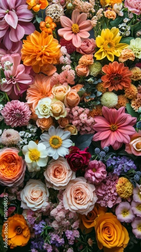 flower, floral, arrangement, spring, vibrant, colours, nature, flower petals, bloom, garden, bright, seasonal, variety, beauty, bouquet, blossom, fresh, display, colourful, natural, plant, life, texture, pattern, purple, pink, yellow, orange, blue, green, red, wildflower, cut, flora, still, horticulture, botanical, high-coloured, cheerful, aesthetic, decoration, fragrant, summer
