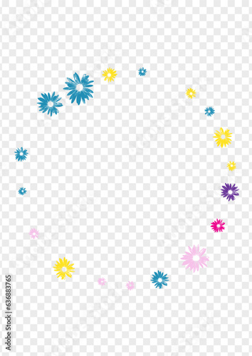 Colorful Flowers Background Transparent Vector. Garden Simple Illustration. Yellow Gerbera Fabric. Handsome Card. Present Violet Plant.
