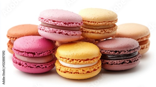Colorful French Macarons Pastry Dessert Stack Isolated White Background Delicious Sweet Treat