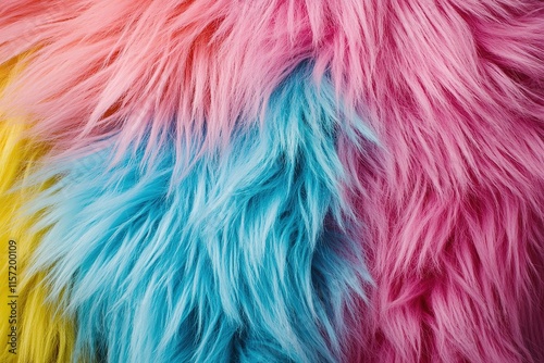 Colorful fur texture blends vibrant pink, blue, and yellow shade
