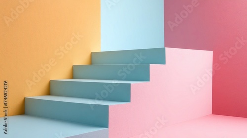 staircase, colourful, pastel, orange, blue, pink, geometric, modern, design, interior, architecture, step, minimalist, decor, home, style, background, wall, art, creative, abstract, bright, vibrant, shape, angle, decorative, space, construction, structure, pattern, visual, element, contemporary, furniture, room, light, shadow, surface, texture, colours, contrast, layout, perspective, form, aesthetic, modernism, artistic, optical