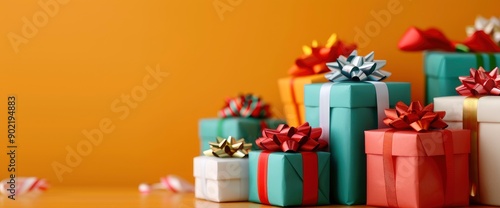 Colorful Gift Boxes With Ribbons On An Orange Background, Providing A Lively And Cheerful Scene
