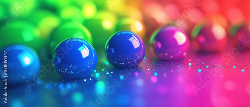 Colorful glitter banner with shiny spheres in retro hues creating a vibrant atmosphere