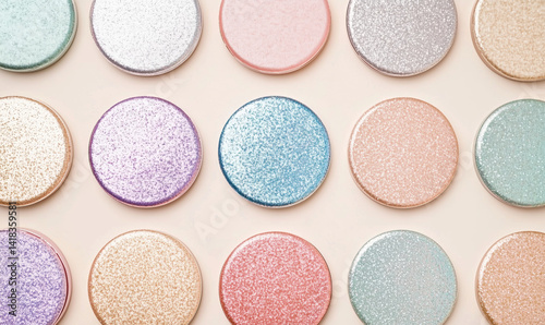 cosmetic, container, glistering, pastel, metallic, colours, beauty, make-up, round, arrangement, shimmer, design, aesthetic, fashion, product, cardboard box, vibrant, decorative, shiny, texture, surface, collection, stylish, modern, elegant, colourful, variety, display, visual, art, creative, trendy, eye-catching, feminine, luxury, accessory, craft, hand-made, unique, glossy, smooth, soft, light, image