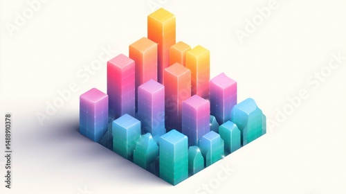Colorful Gradient 3D Bar Chart Illustration for Data Visualization and Design Projects
