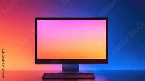 computer, monitor, display, gradient, colours, technology, keyboard, desk, modern, design, electronic, workspace, office, aesthetic, brightness, interface, creative, illumination, screen, desktop, equipment, software, programming, digital, innovation, productivity, gaming, light, minimalism, abstract, futuristic, home office, cyberspace, presentation, art, graphic, ambience, electronic, color palette