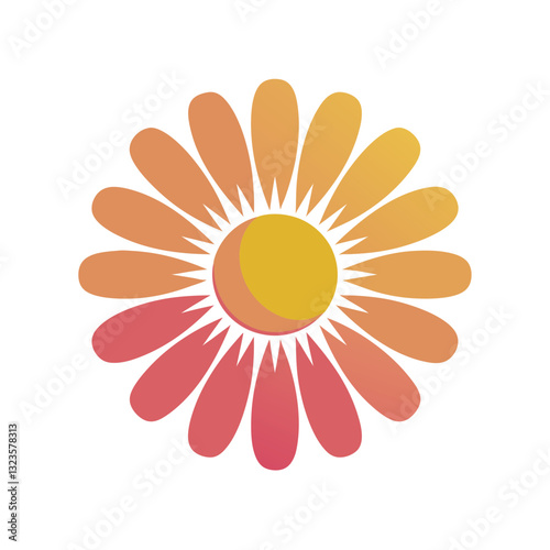 flower, daisy, colourful, gradient, orange, pink, yellow, design, illustration, blossom, nature, abstract, floral, decorative, digital, graphic, modern, bright, vibrant, creative, summer, spring, emblem, logotype, tattoo, pattern, sticker, poster, card, decoration, wallpaper, textile, craft, unique