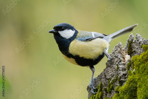 Colorful great tit bird on branch of tree