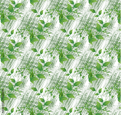 Colorful green leaves on white seamless background