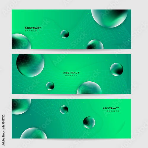 Colorful green vibrant web banner background template with abstract shapes. Collection of horizontal promotion banners with gradient colors and abstract geometric backdrop. Header web design.