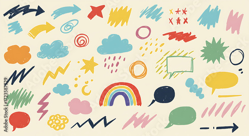 Colorful Hand-Drawn Doodle Shapes Set on Beige Background