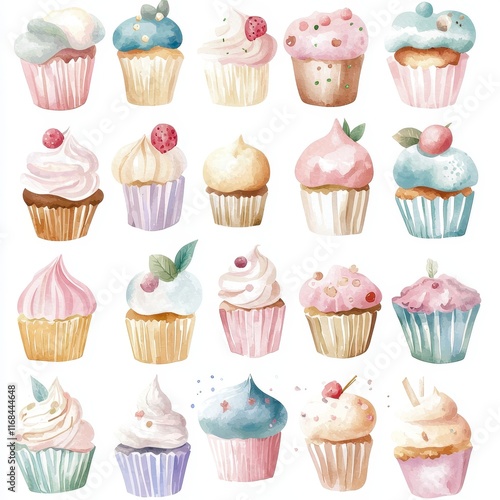cupcake, dessert, sweet, treat, pastry, frosting, cream, decoration, celebration, delicious, food, epicure, bakery, festive, variety, colourful, artistic, painting, watercolor, sugar, indulgence, joyful, charming, miniature, beautiful, taste, tasty, snack, homemade, party, vanilla, chocolate, seasonal, whimsical, nature, favor, event, design, inspiration, attraction