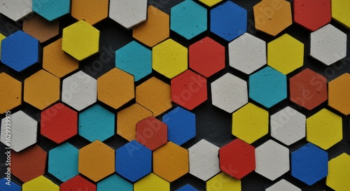 hexagonal, tile, pattern, colourful, vibrant, geometric, abstract, design, texture, wall, mosaic, background, surface, decorative, many-coloured, bright, honeycomb, arrangement, shape, layout, colours, red, orange, yellow, blue, green, white, composite, art, decoration, modern, contemporary, patterned, structure, craftsmanship, interlocking, composition, artistic, visual, aesthetic, intricate, bold, eye-catching