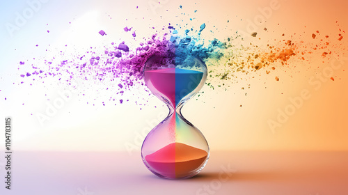 Colorful hourglass with sand in motion. Temporal. Illustration