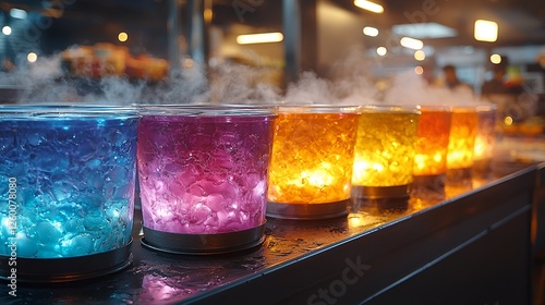food, eatery, cafes, illuminated, candle, drink, colourful, display, evening, night, hot, beverage, counter, drink, glowing, transparent, liquid, modern, interior, warm, light, container, smoke, kitchen, table, bar, energy, design, dining, delicious