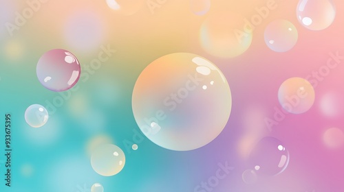 Colorful, iridescent bubbles float against a soft, pastel background.