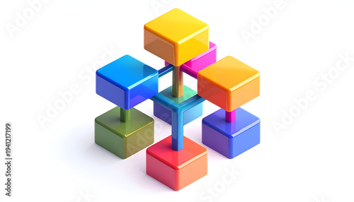 block, isometric, cube, structure, connection, abstract, geometric, colourful, design, render, three-dimensional, digital, graphic, modern, bright, shape, element, vibrant, network, stack, blue, yellow, orange, green, red, pink, construction, square, perspective, illustration, art, low, linked, presentation, communication, system, diagram, modular, toy, concept, object, clip art, model, isolated, learning, creative