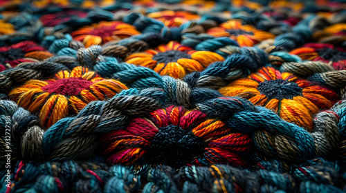 Colorful Knitted Fabric with Flower Motifs - Close Up Macro Illustration