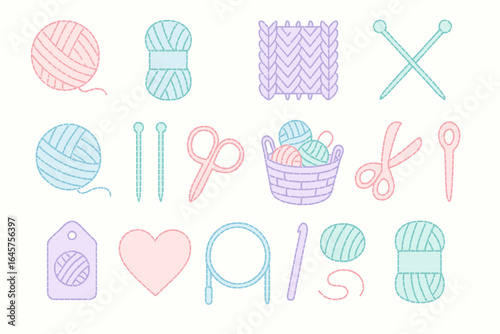 knit up, tool, threaded, pastel, colourful, icon, needle, crochet, scissors, nubes, basket, ball, skein, pattern, wool, stitching, hobby, thread, fabric, textile, design, illustration, creative, hand-made, needlecraft, sewing, soft, artistic, leisure, bricolage, vector, icon