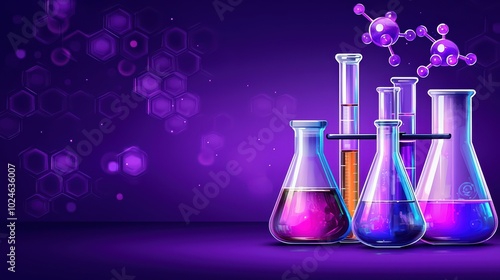laboratory, glassware, experimentation, colourful, liquid, purple, background, represent, scientific, beaker, result, mixture, datum, handle, safety, equipment, reaction, synthesis, instrument, chemical, property, design, practice, gradient, technique