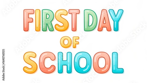 Colorful letters announce the excitement of the first day of school for students everywhere in a cheerful design