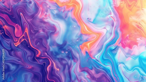 Colorful liquid marble background with waves and swirls, soft pastel colors. Abstract fluid art in bright blue, purple, orange and pink, with a marble texture, iridescent oil painting in the style of