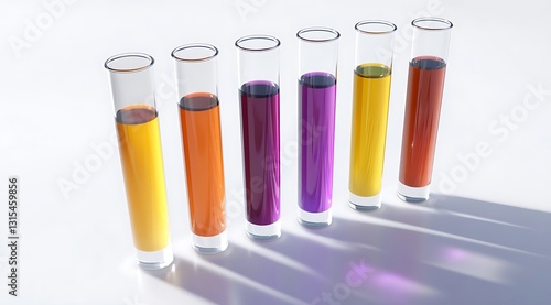 Colorful liquids in test tubes create a vibrant display on a light surface